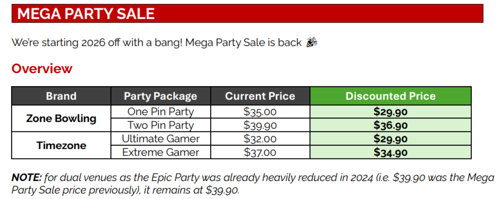 Mega Party Sale