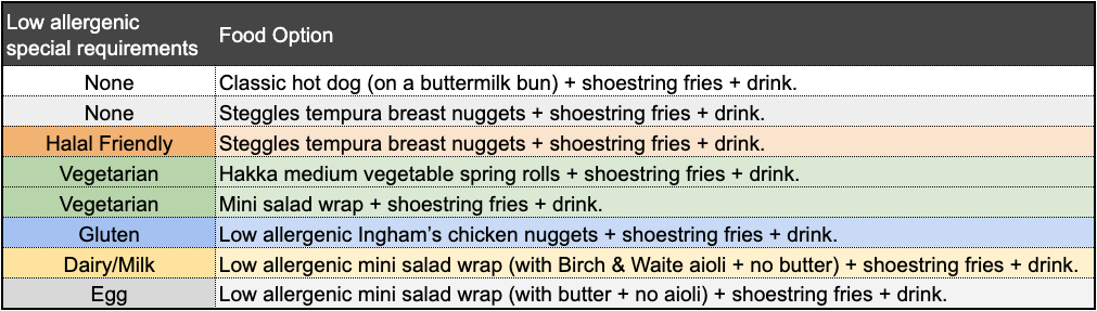 Internal team reminder: • We never tell a guest that a meal is free of anything, as it might still contain traces of allergens. • Only give the low allergenic special requirement meal options IF requested by guests. • The demographic of this venue also will have a lot of Jewish guests requesting kosher parties requesting self catering. unfortunately this is not something we will be able to cater for birthday parties due to our food licence with local council.