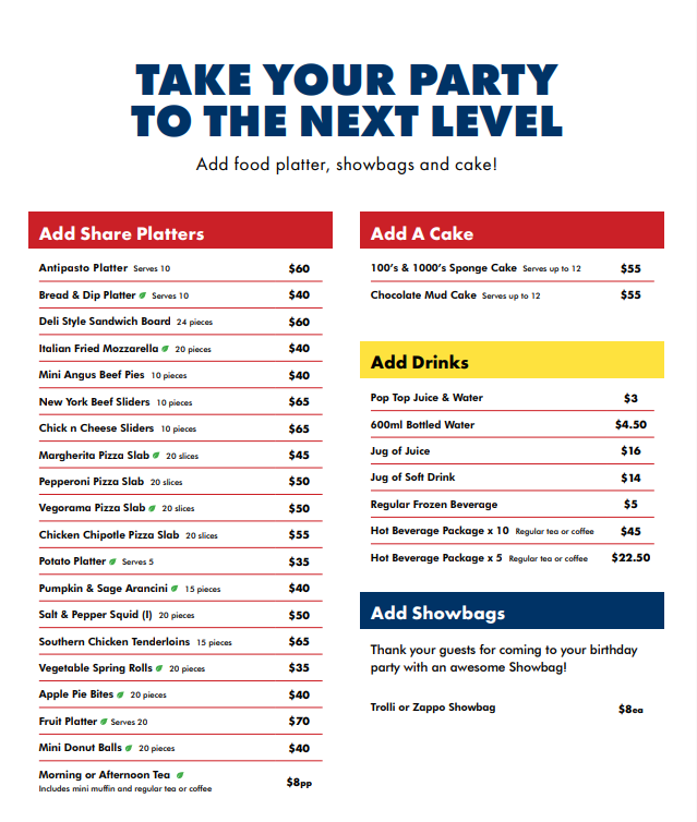 Party Package Pricing & Inclusions