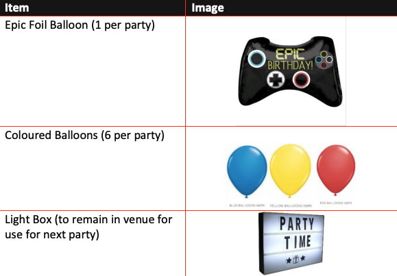 Confirm start time and advise party parents, party organisers, and party guests to arrive 15 minutes before start time: